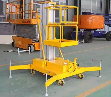 鋁合金液壓升降機且耗電少、無污染、工作時不傷地面,可用于貼墻工作及探出作業,工作無死角。鋁合金液壓升降機廣泛適用于星級酒店,大型超市等各行業大廳、廠房內的高空清潔和電線、照明安裝維護類高空作業,鋁合金液壓升降機根據其自身升高度可分為:單桅柱式升降機(4-10米),雙桅柱式升降機(8-14米)跟多桅柱式升降機(12-22米)。